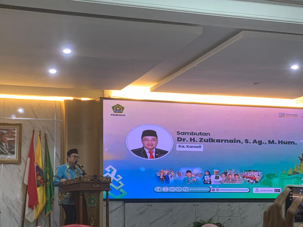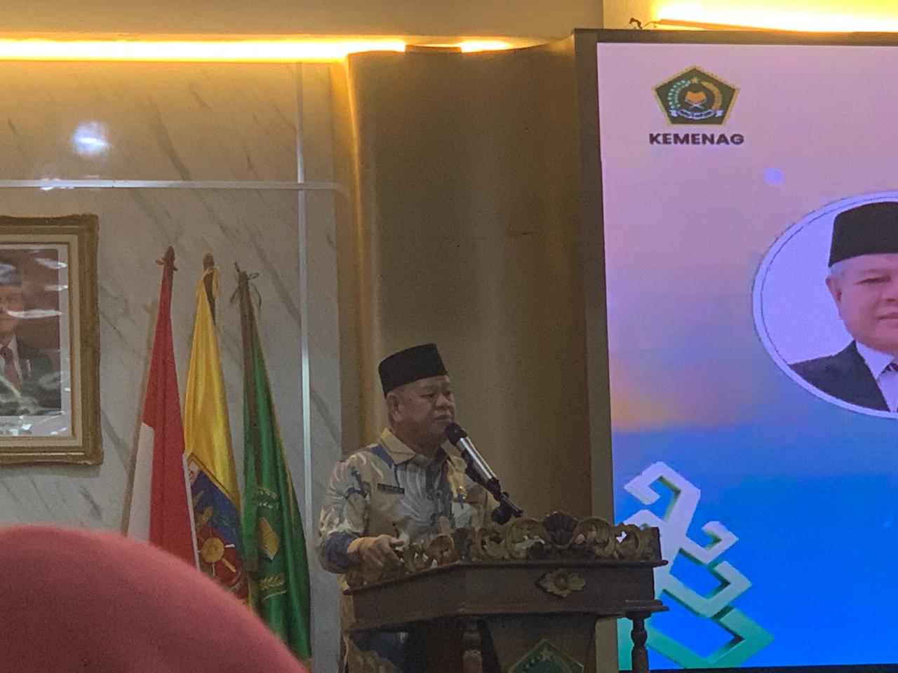 Kepala Kanwil Kemenag Provinsi Lampung menyampaikan sambutan pada kegiatan launching PMB Terpadu Tahun Pelajaran 2026/2027.