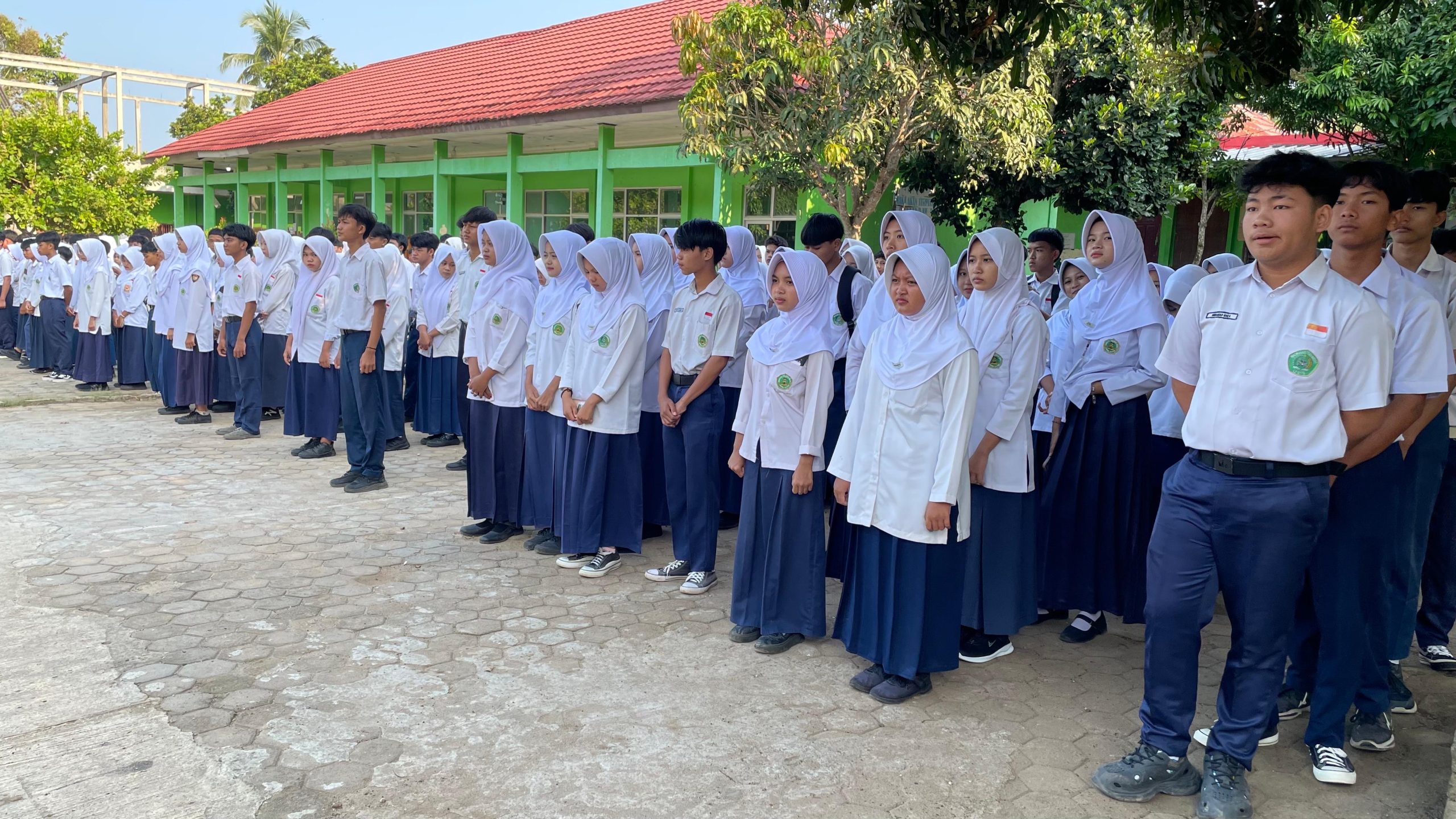 Siswa-siswi kelas IX MTsN 2 Lampung Selatan berbaris rapi saat mengikuti apel pembukaan Ujian Madrasah Tahun Pelajaran 2025/2026.