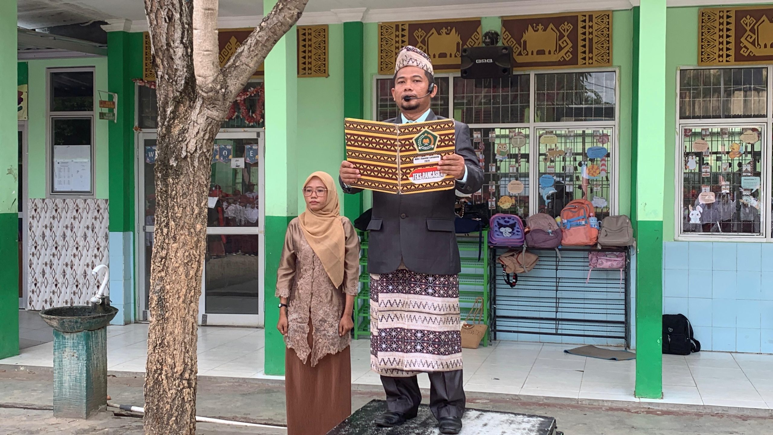 Upacara dimulai dengan tertib. Para guru berdiri mantap di tengah lapangan mengenakan pakaian adat Lampung, Palembang, hingga Melayu, menampilkan kekayaan budaya yang menjadi ciri pendidikan karakter di madrasah. Siswa tampak antusias mengikuti rangkaian kegiatan, sambil menyaksikan guru-guru mereka mengambil peran penuh sebagai pengibar bendera, pemimpin lagu, dan pembaca teks Pancasila.