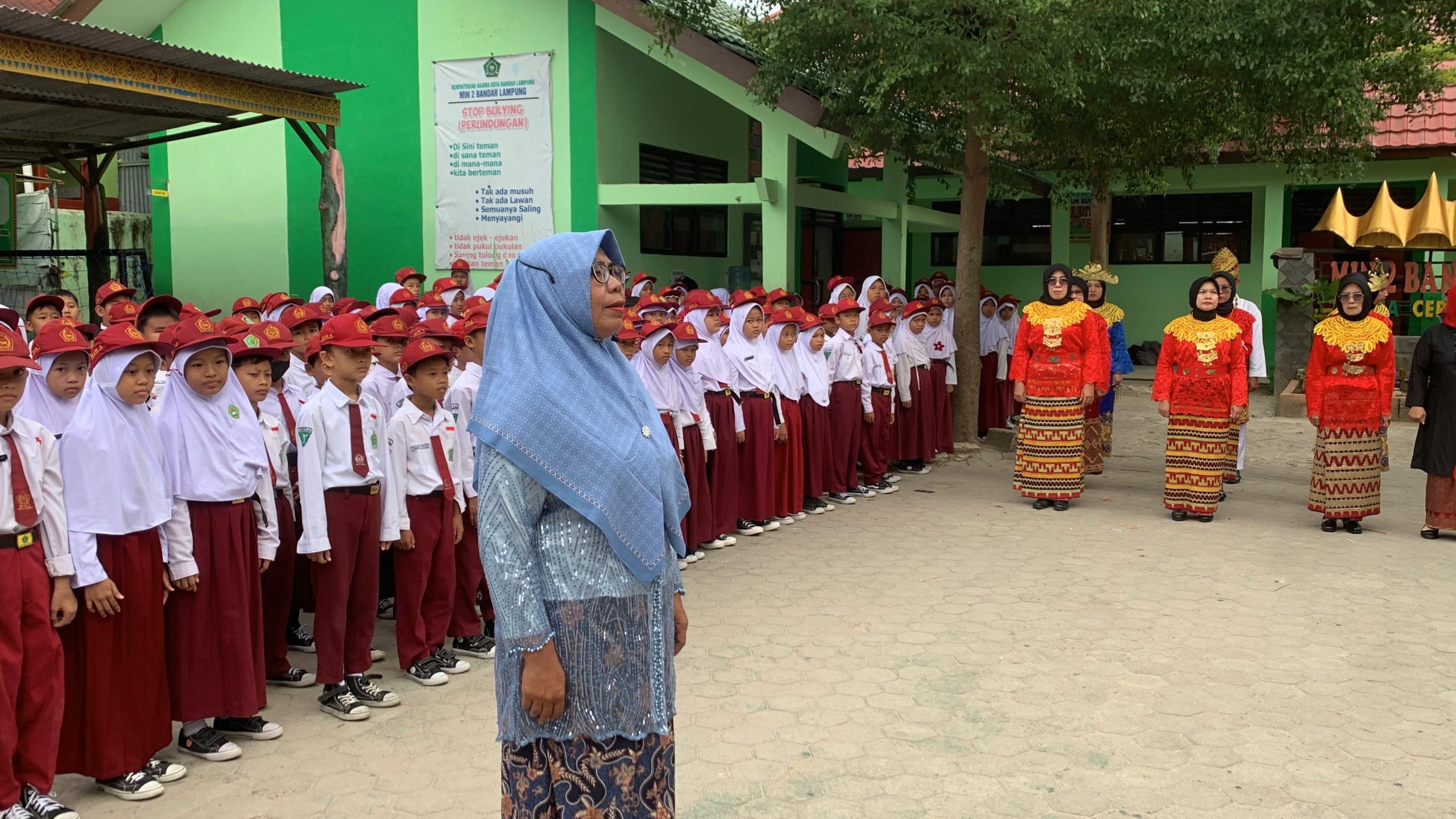 Para siswa mengikuti jalannya upacara dengan penuh perhatian. Mereka menyaksikan bagaimana guru mereka bukan sekadar mengajar di kelas, tetapi juga memberi contoh nyata tentang kedisiplinan, kesantunan, dan penghargaan terhadap budaya bangsa. Momen ini sekaligus menjadi bentuk penguatan pendidikan karakter melalui pembiasaan kegiatan yang bernilai.