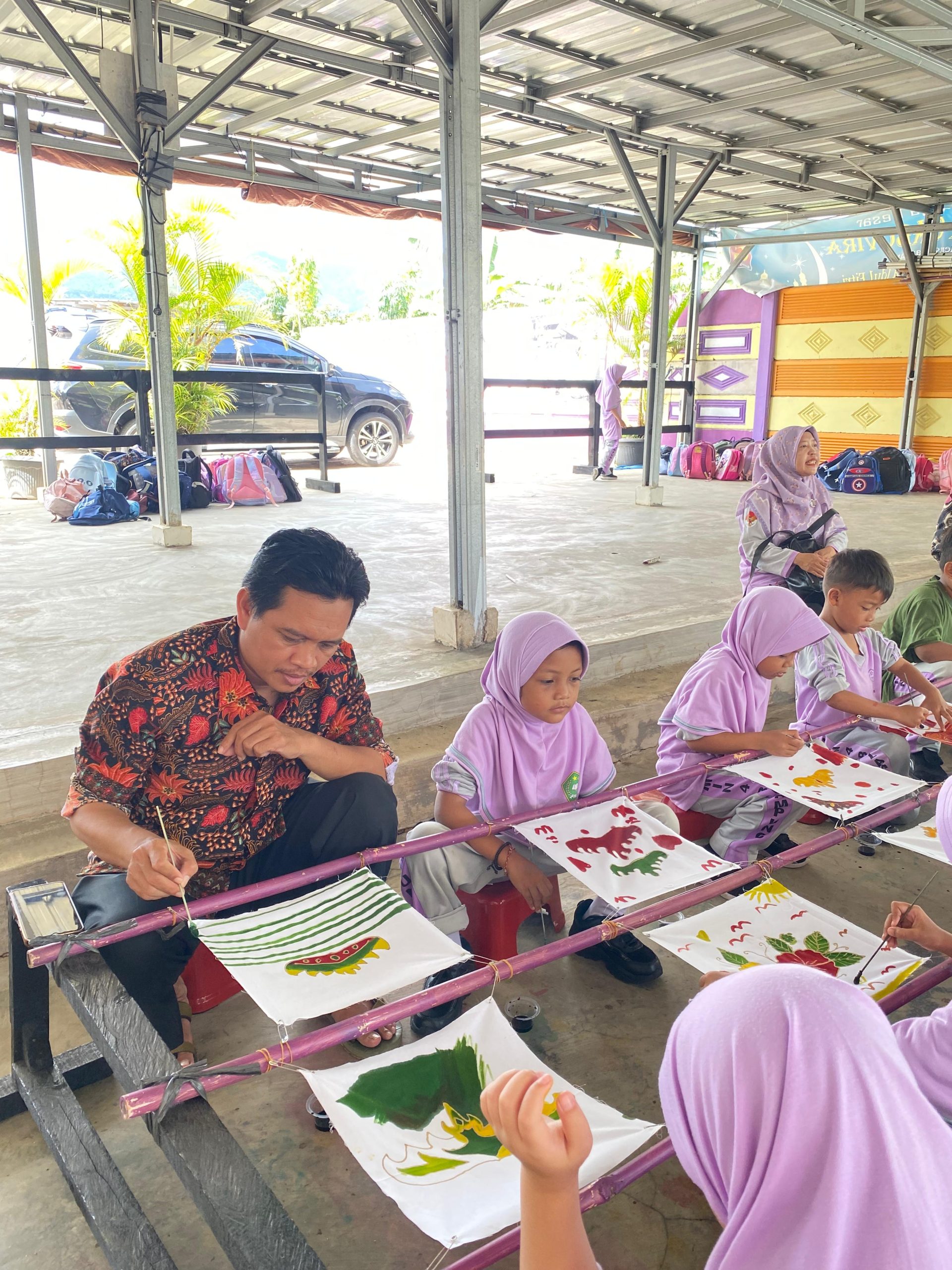 Adapun kegiatan ini juga diikuti oleh para wali kelas, yakni Anis Ilmi Bilqis (1B), Evie Yulianti, S.Pd.I (1A), Mahdawati, S.Pd.I (1C), dan Septa Ayukanti, S.Pd (1E), yang turut membimbing siswa selama kegiatan berlangsung. Mereka aktif memberikan dukungan dan memastikan setiap anak dapat mencoba proses membatik dengan nyaman dan menyenangkan.