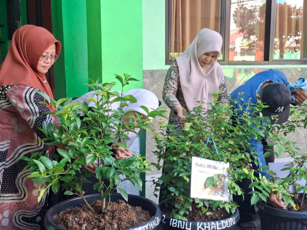 Pada saat bersamaan, Kepala MIN 5 Bandar Lampung Hj. Fakihah bersama sejumlah dewan guru melaksanakan perawatan tanaman buah di lingkungan madrasah dengan memberi pupuk serta membersihkan hama pada tanaman. Aktivitas tersebut memperlihatkan bahwa pendidikan karakter juga tumbuh melalui keteladanan nyata para pendidik, termasuk dalam menanamkan kepedulian terhadap lingkungan hidup.