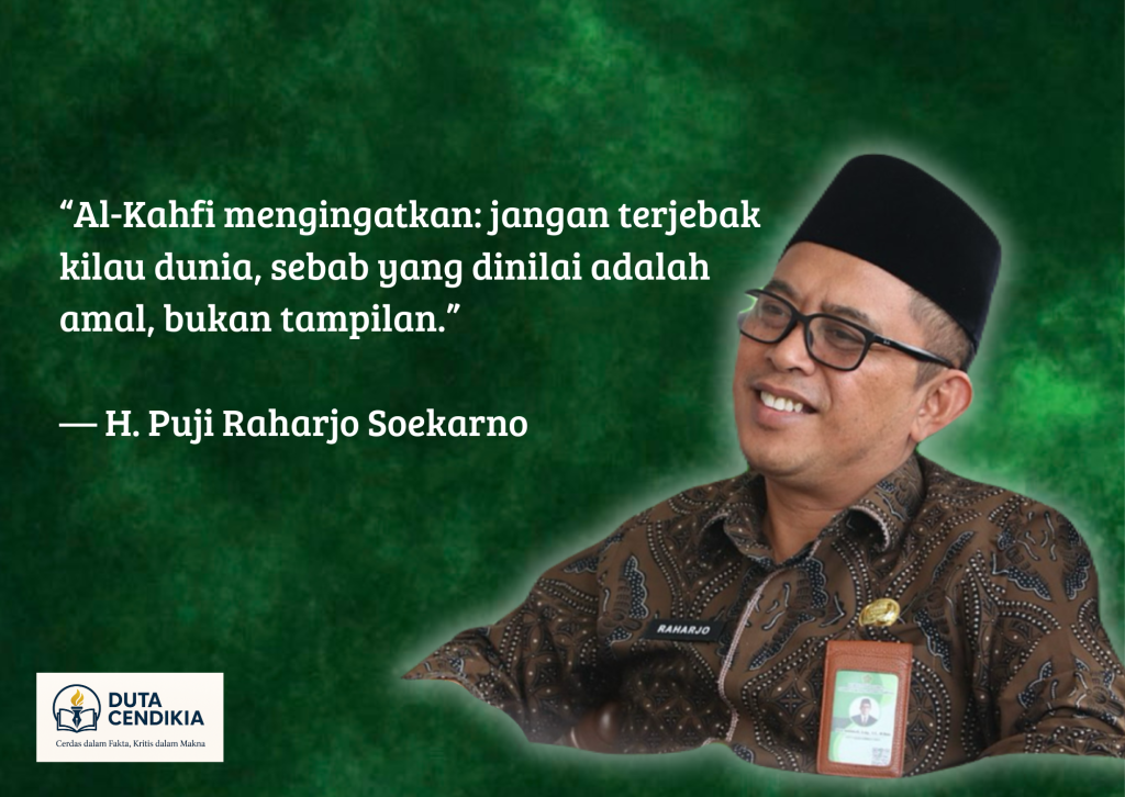 dutacendikia.id, Lampung – Setiap Jumat kita dianjurkan membaca Surah Al-Kahfi, namun pernahkah kita benar-benar menyelami pesan mendalam yang terkandung dalam ayat-ayatnya? Tahukah kita bahwa di balik bacaan yang rutin itu tersimpan peringatan keras tentang duniayang tampak manis dan memesona, namun sejatinya hanyalah jebakan ujian bagi manusia? Rasulullah saw telah memberikan peringatan yang sangat jelas bahwa dunia itu manis dan menggoda, dan justru karena daya tarik itulah dunia menjadi ladang fitnah yang amat berbahaya jika tidak disikapi dengan hati-hati dan iman yang kuat. Lebih dari itu, Allah swt sendiri menyatakan bahwa Dia menjadikan manusia sebagai khalifah di bumi dan akan melihat apa yang mereka perbuat di atasnya, mengisyaratkan bahwa seluruh aktivitas kita di dunia tidak luput dari pengawasan-Nya.