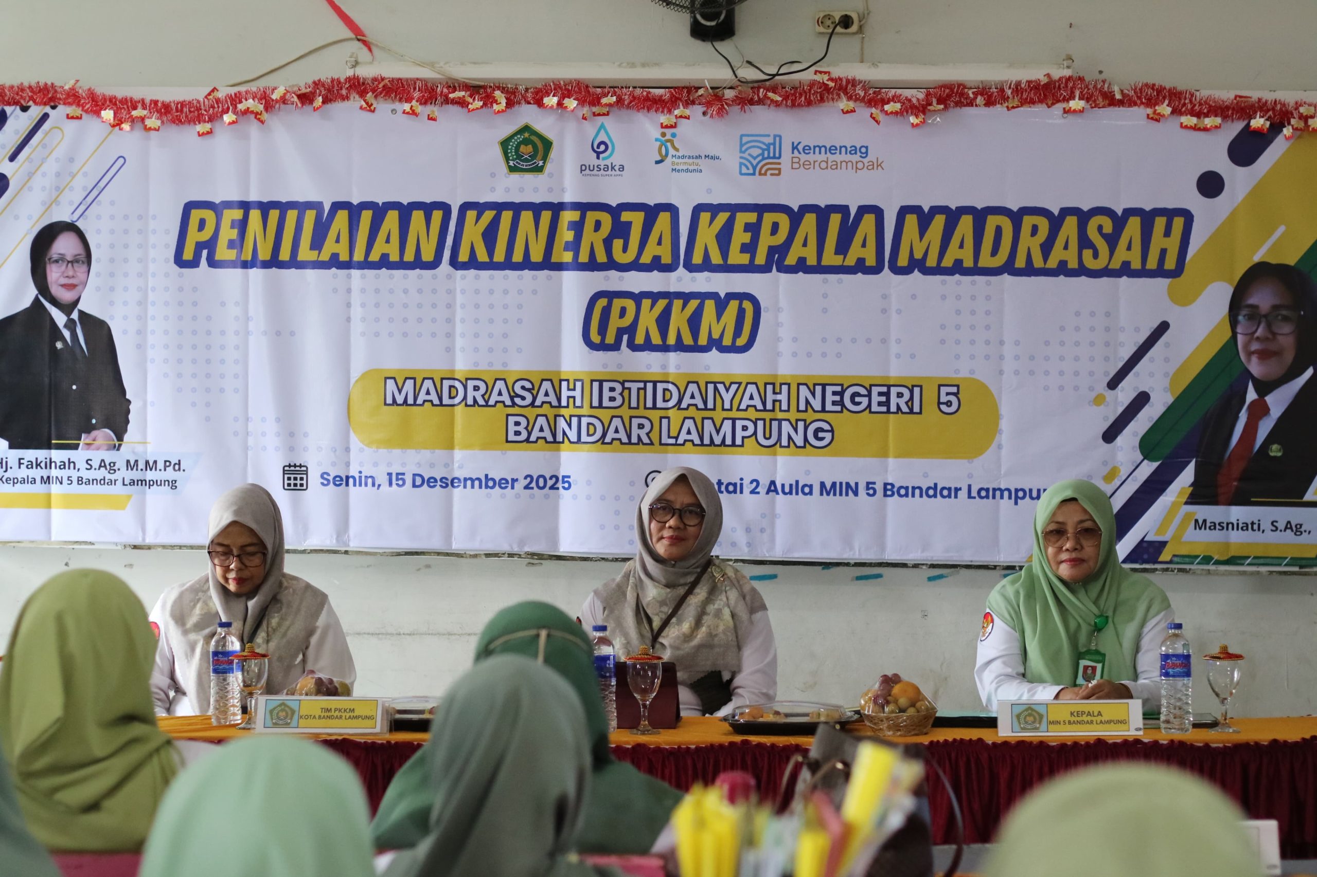 Tim penilai PKKM Kemenag Kota Bandar Lampung memimpin jalannya penilaian kinerja Kepala MIN 5 Bandar Lampung di aula madrasah.