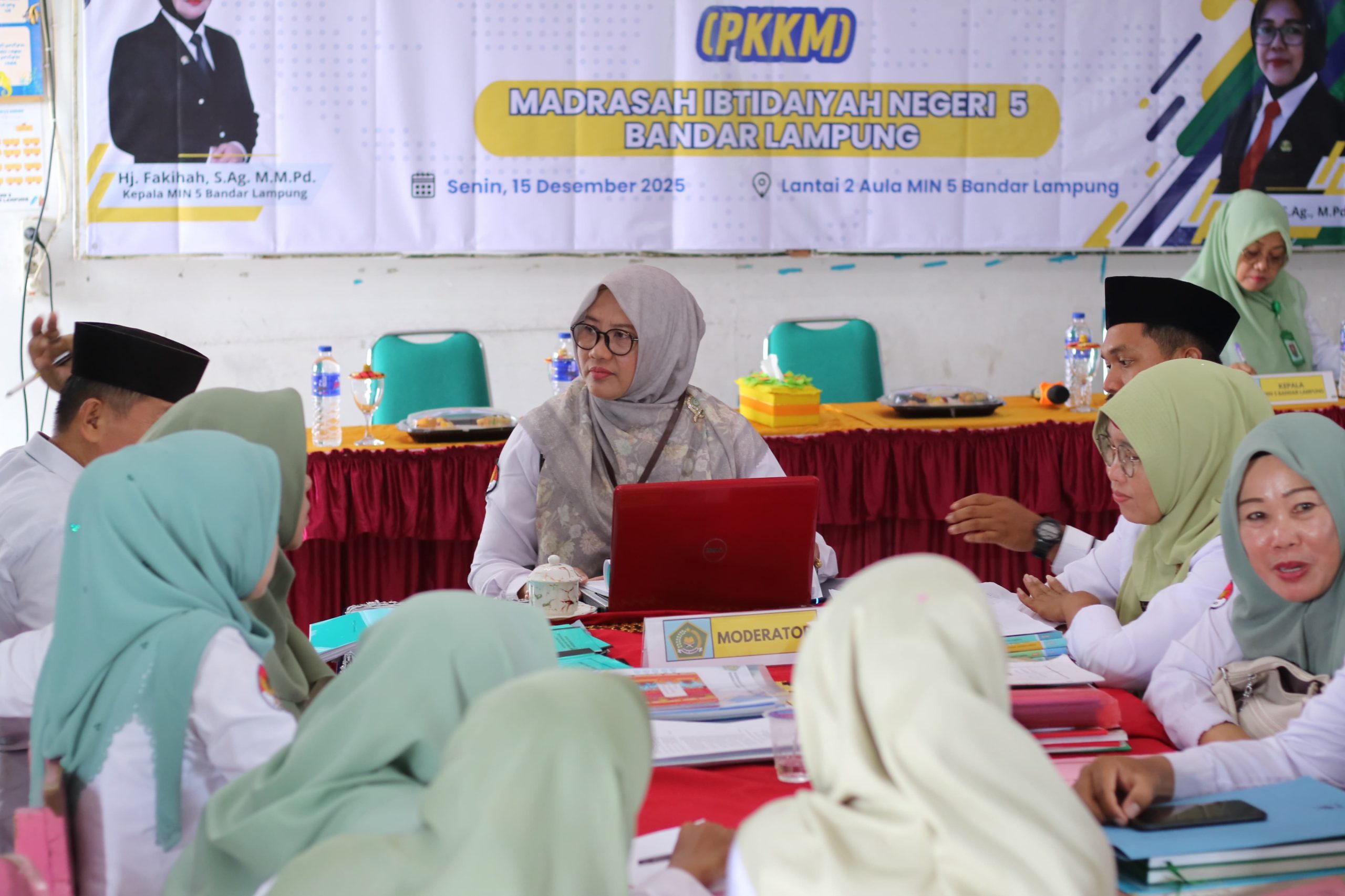 PKKM MIN 5 Bandar Lampung dihadiri oleh tim penilai dari Kementerian Agama Kota Bandar Lampung, yakni Jumiyanti, M.Pd. sebagai penilai pertama sekaligus pengawas pembina, serta Masniati, S.Ag., M.Pd.I., Ketua Kelompok Kerja Pengawas (Pokjawas) Kemenag Kota Bandar Lampung, sebagai penilai kedua. Kehadiran tim penilai disambut langsung oleh kepala madrasah beserta jajaran guru dan tenaga kependidikan.