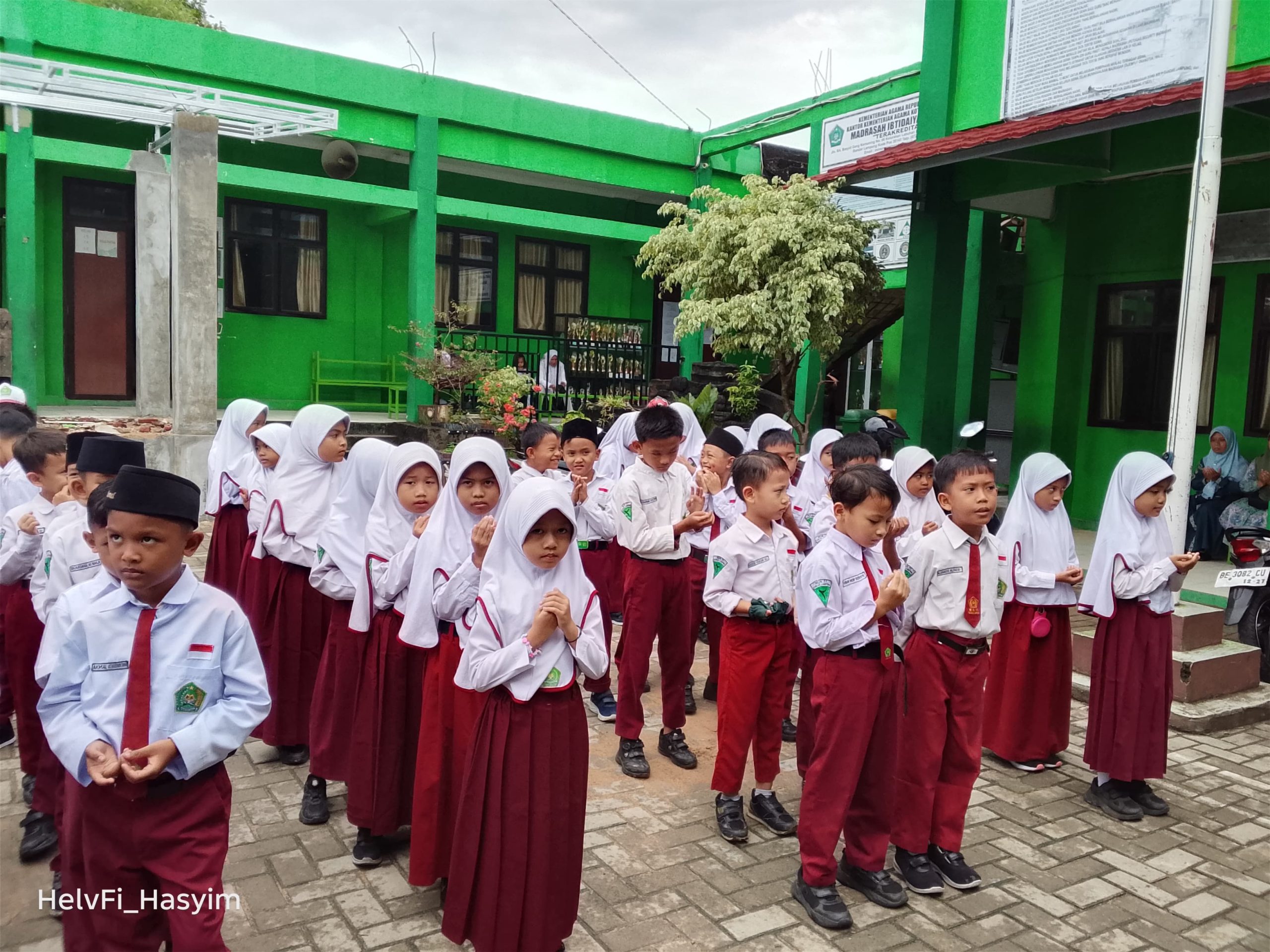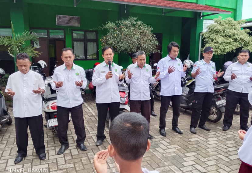Sejak pagi, seluruh peserta telah berkumpul di halaman madrasah. Para siswa tampak berbaris rapi mengenakan seragam, sementara jajaran guru dan staf berdiri di hadapan mereka untuk memimpin jalannya kegiatan. Nuansa religius terasa ketika acara diawali dengan pembacaan ayat suci Al-Qur’an.