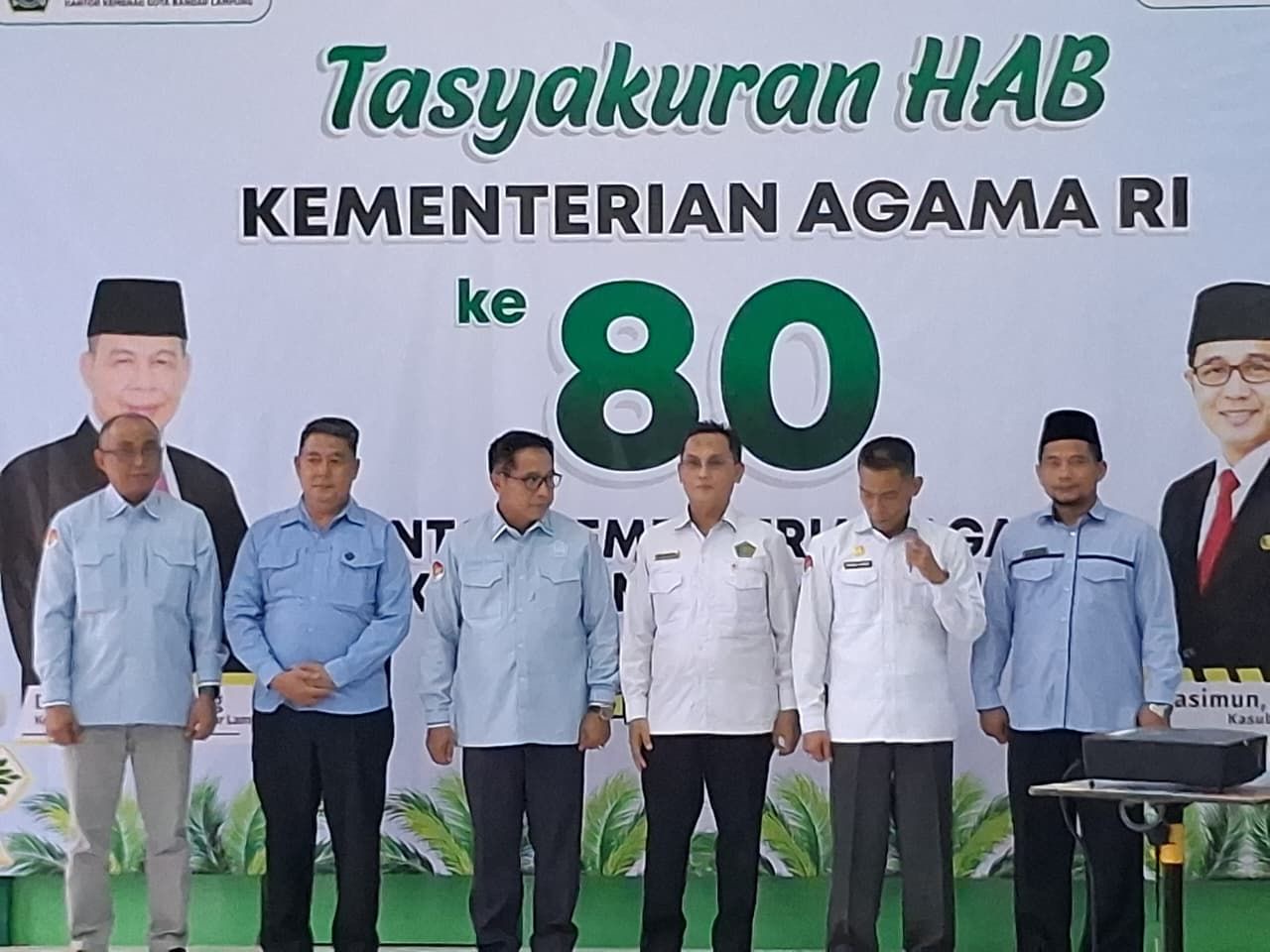 Penyerahan piagam berlangsung di Bandar Lampung, Selasa, 6 Januari 2026, bersamaan dengan kegiatan tasyakuran HAB Kemenag ke-80 yang diikuti jajaran pimpinan dan pegawai di lingkungan Kantor Kementerian Agama Kota Bandar Lampung. Kegiatan berlangsung tertib dan khidmat, menjadi ruang refleksi atas perjalanan pengabdian aparatur Kementerian Agama.