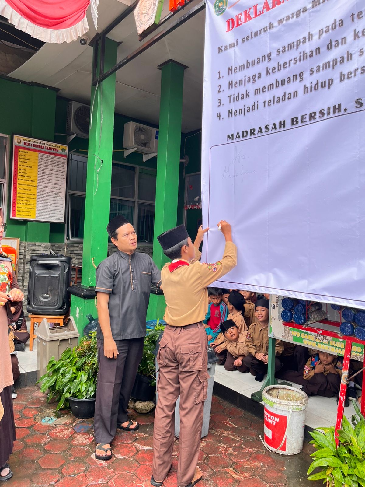 Deklarasi ditandai dengan pemasangan spanduk berisi komitmen bersama seluruh warga madrasah dalam menjaga kebersihan lingkungan sekolah. Beberapa poin yang tertuang dalam deklarasi antara lain kewajiban membuang sampah pada tempatnya, menjaga kebersihan fasilitas madrasah, serta membangun keteladanan hidup bersih dalam aktivitas sehari-hari.
