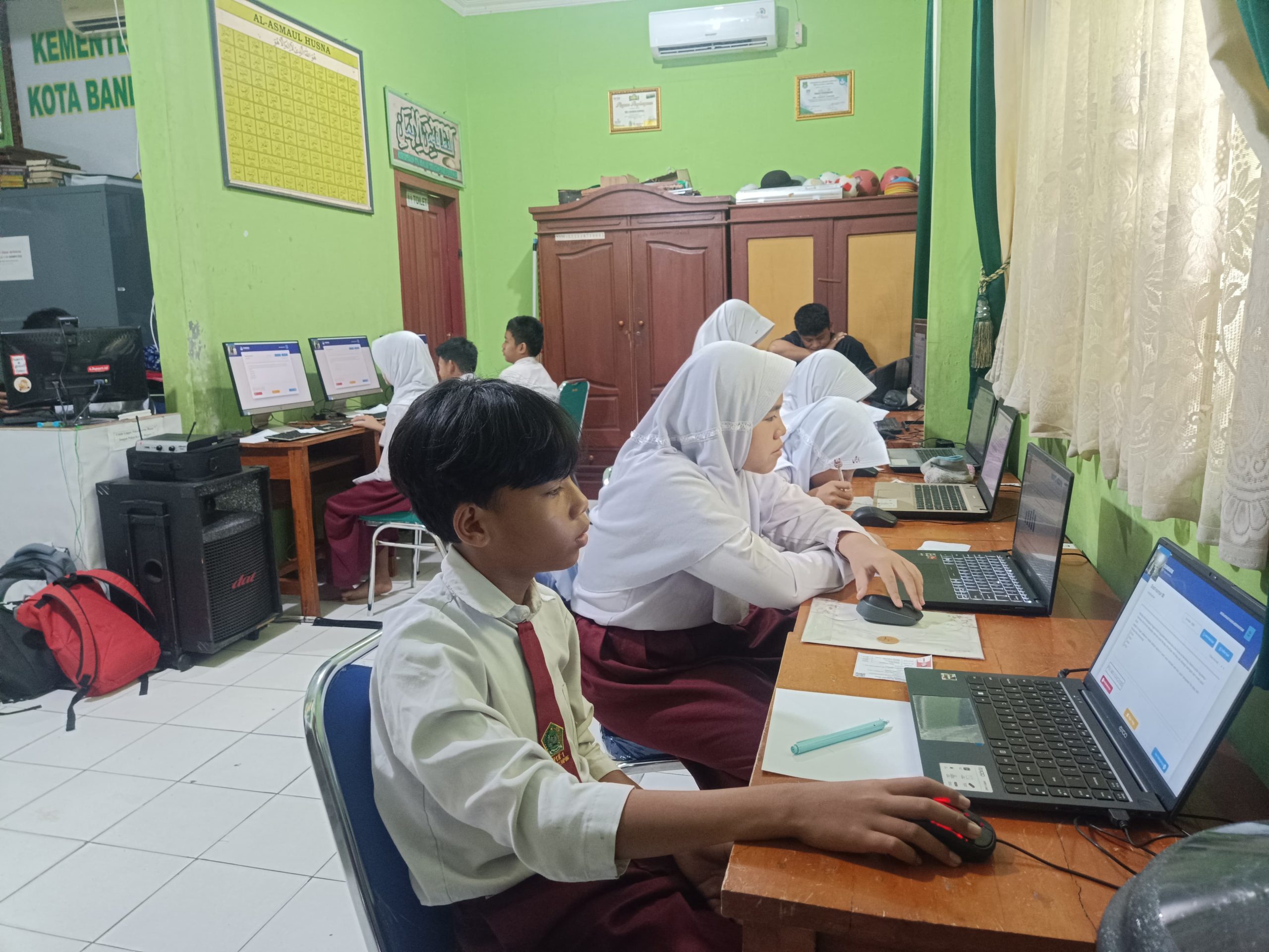Selama kegiatan berlangsung, para guru turut mendampingi serta memastikan proses ujian berjalan sesuai prosedur. Pendampingan ini tidak hanya berkaitan dengan aspek teknis pelaksanaan ujian berbasis komputer, tetapi juga memberikan ketenangan bagi siswa agar dapat mengerjakan soal dengan lebih fokus.