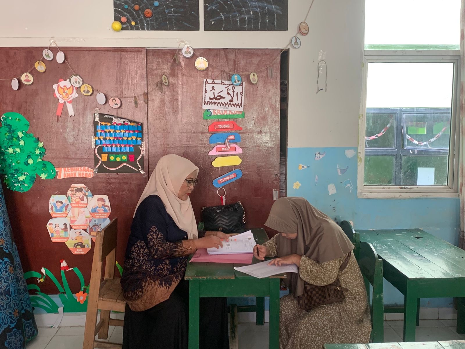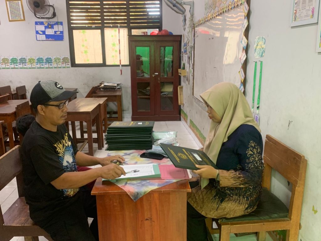 Proses penandatanganan dan verifikasi rapor berlangsung tertib di ruang kelas MIN 2 Bandar Lampung.