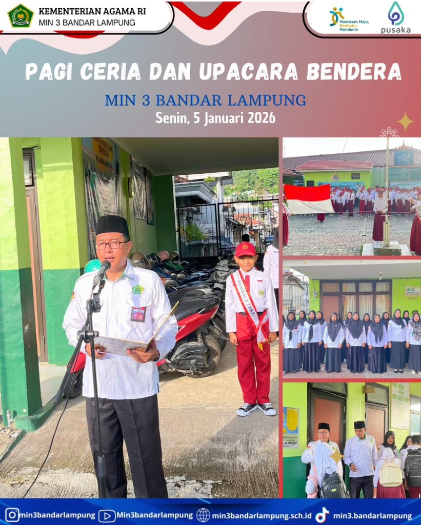 Melalui kegiatan Pagi Ceria dan Upacara Bendera ini, MIN 3 Bandar Lampung menegaskan komitmennya dalam menanamkan nilai cinta tanah air, kedisiplinan, serta karakter religius sejak dini. Madrasah berharap semangat yang terbangun di hari pertama ini dapat terus terjaga dan menjadi energi positif sepanjang semester genap.(Septiano/Humas)