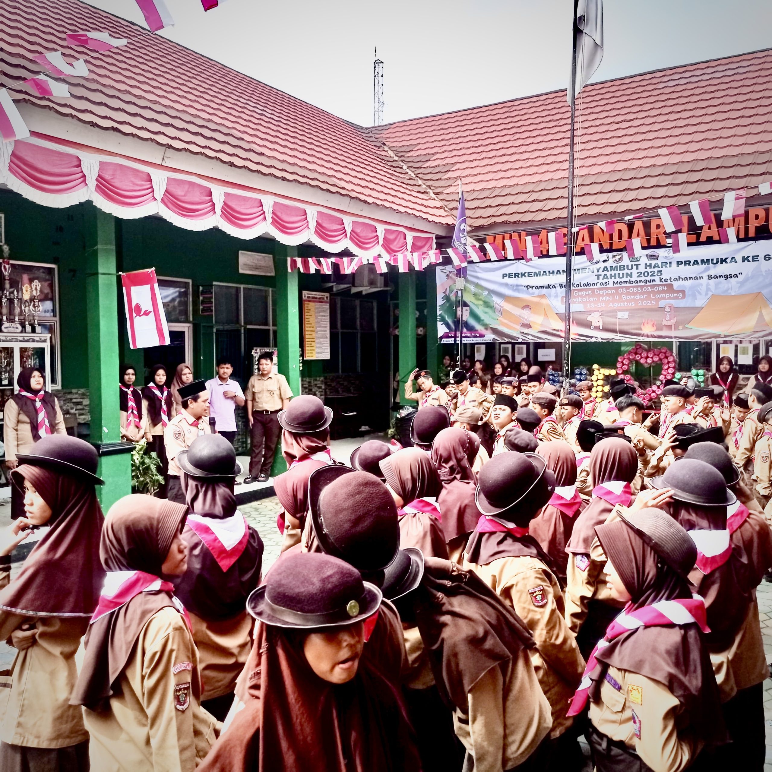 dutacendikia.id, Bandar Lampung – Dalam rangka memperingati Hari Pramuka, Madrasah Ibtidaiyah Negeri (MIN) 4 Bandar Lampung menyelenggarakan kegiatan perkemahan yang melibatkan seluruh anggota Pramuka madrasah. Acara ini tidak hanya menjadi momen perayaan, tetapi juga media pembinaan karakter dan penanaman nilai kebangsaan bagi para siswa.