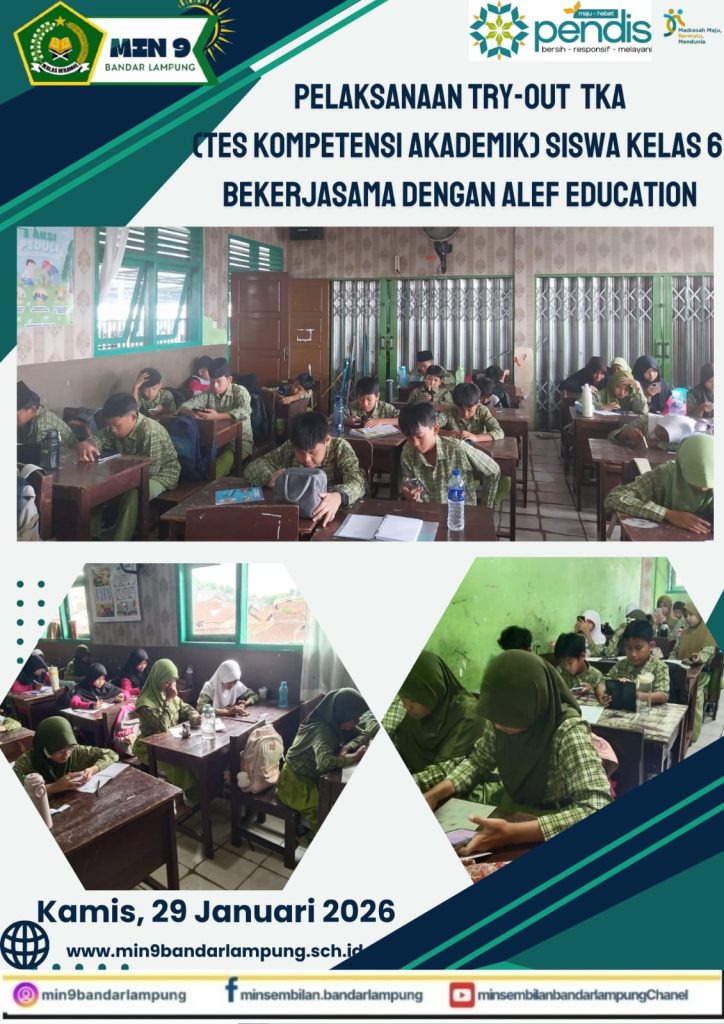 dutacendikia.id, Bandar Lampung – MIN 9 Bandar Lampung melaksanakan Try-Out Tes Kompetensi Akademik (TKA) bagi siswa kelas VI pada Kamis, 29 Januari 2026. Kegiatan ini digelar sebagai bagian dari ikhtiar madrasah dalam menyiapkan peserta didik menghadapi asesmen akademik secara lebih terarah dan terukur.
