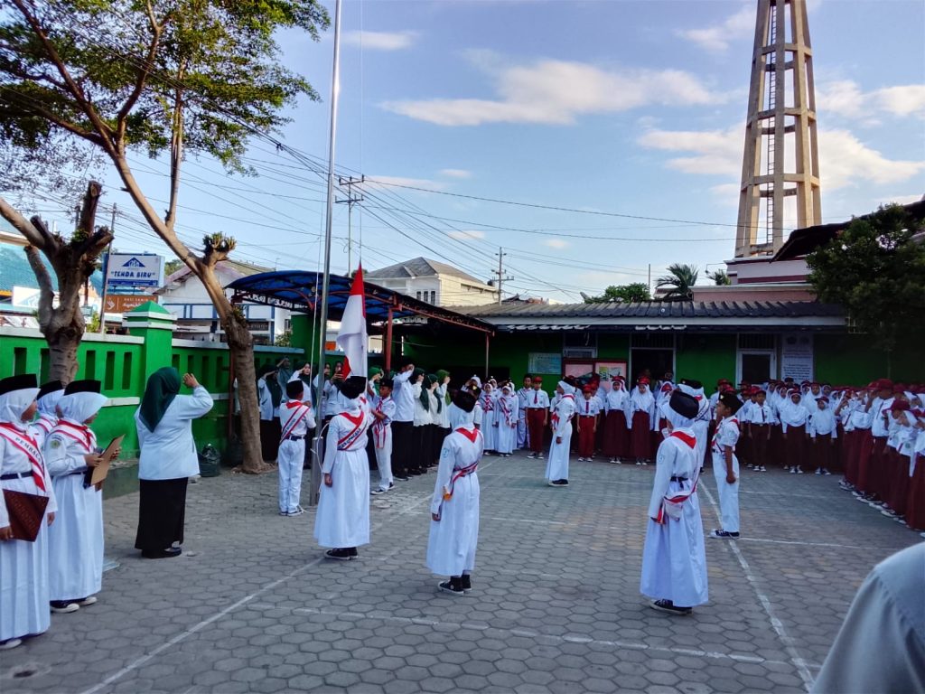 Rangkaian kegiatan berjalan tertib. Pengibaran Sang Merah Putih yang dilakukan pasukan pengibar bendera berlangsung lancar, diikuti pembacaan Pancasila, menyanyikan Indonesia Raya, Mars Madrasah Ibtidaiyah, hingga lagu nasional. Barisan siswa terlihat serius mengikuti jalannya prosesi, sementara guru-guru mengawasi dengan penuh kesungguhan.