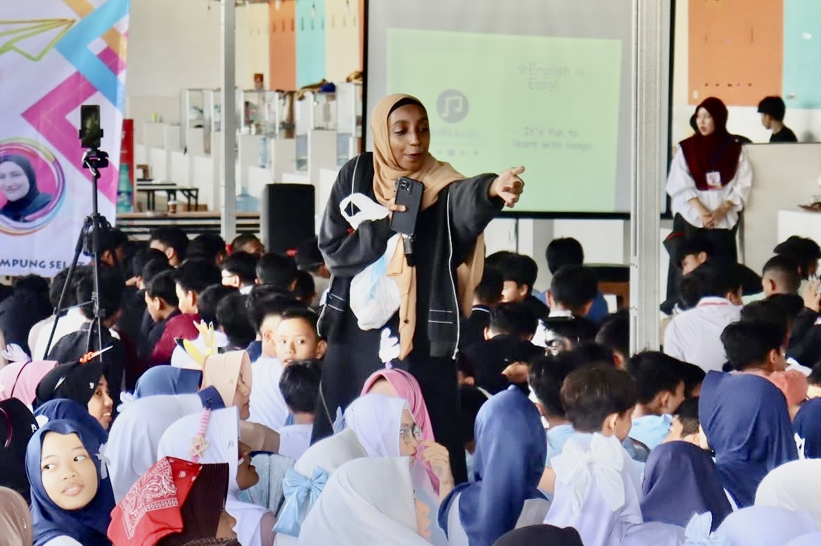 Dengan latar kolam renang dan nuansa alam terbuka, kegiatan ini menghadirkan pengalaman belajar yang menyenangkan dan atraktif. Talk show menghadirkan narasumber spesial asal Sudan, Mrs. Mozan Osman Muhammad, seorang pendidik internasional yang telah melanglang buana di dunia pendidikan. Dalam paparannya, Mrs. Mozan membagikan kisah inspiratif tentang pentingnya penguasaan Bahasa Inggris sebagai bekal menghadapi persaingan global, serta mendorong para siswa untuk berani tampil dan percaya diri menggunakan Bahasa Inggris dalam kehidupan sehari-hari.