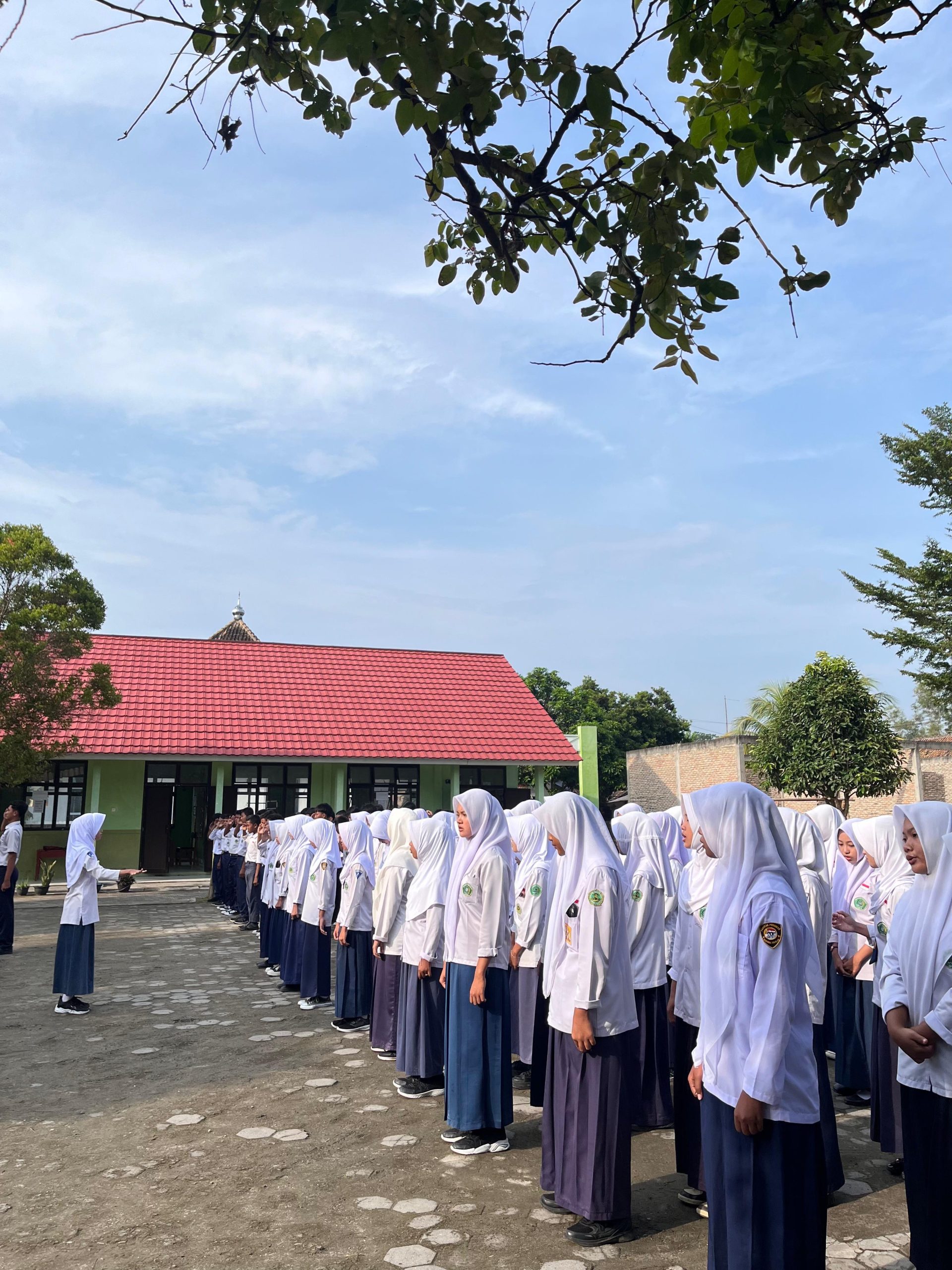 Suasana halaman madrasah saat pelaksanaan upacara Hari Kartini yang berlangsung lancar dan tertib.