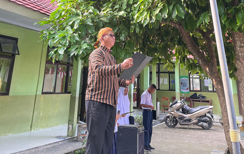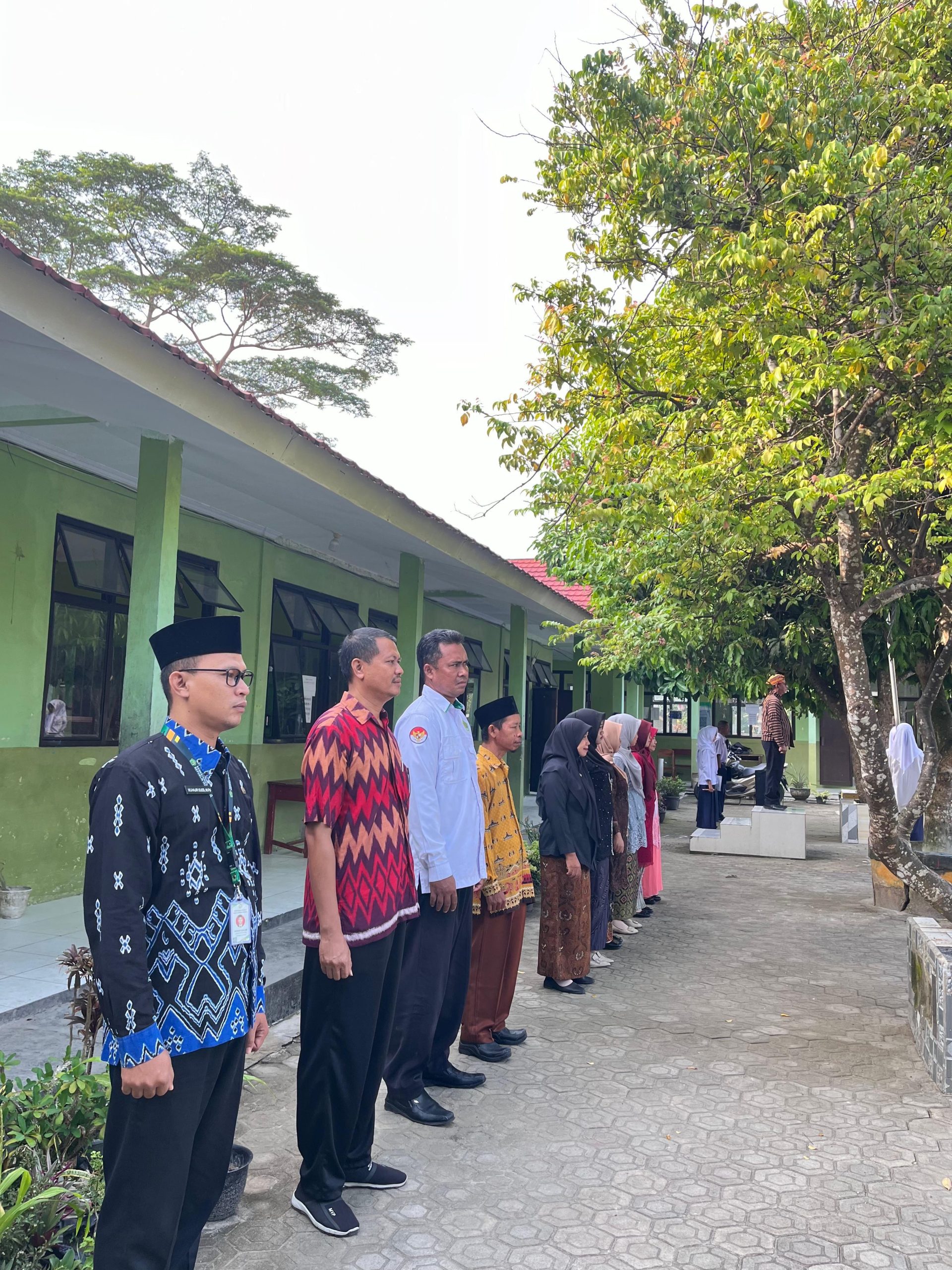 Dewan guru MTsN 2 Lampung Selatan Kampus Kalirejo mengikuti upacara Hari Kartini dengan penuh khidmat di halaman madrasah.