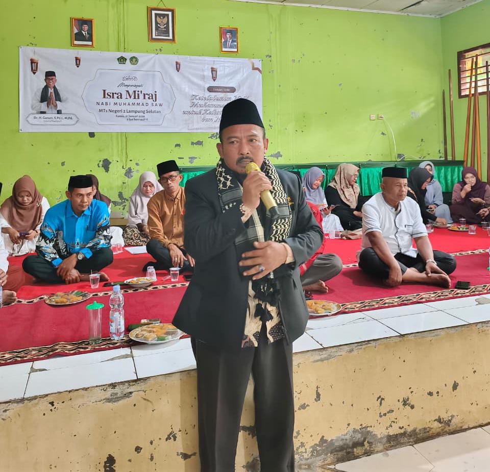 dutacendikia.id, Lampung Selatan – MTsN 2 Lampung Selatan menggelar peringatan Isra Mi’raj Nabi Muhammad SAW pada Kamis (22/1/2026) pagi. Kegiatan yang dimulai pukul 07.30 WIB tersebut berlangsung khidmat di Aula MTsN 2 Lampung Selatan Kampus Sukaraja dan diikuti oleh dewan guru, staf tata usaha, serta seluruh siswa-siswi madrasah.