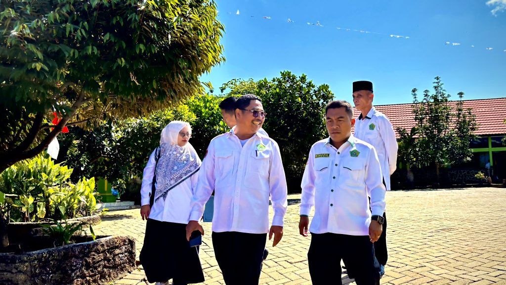 Suasana ramah tamah dan diskusi antara Kepala MTsN 2 Pesawaran bersama tim monitoring Kemenag terkait pelaksanaan ANBK Tahun 2025.