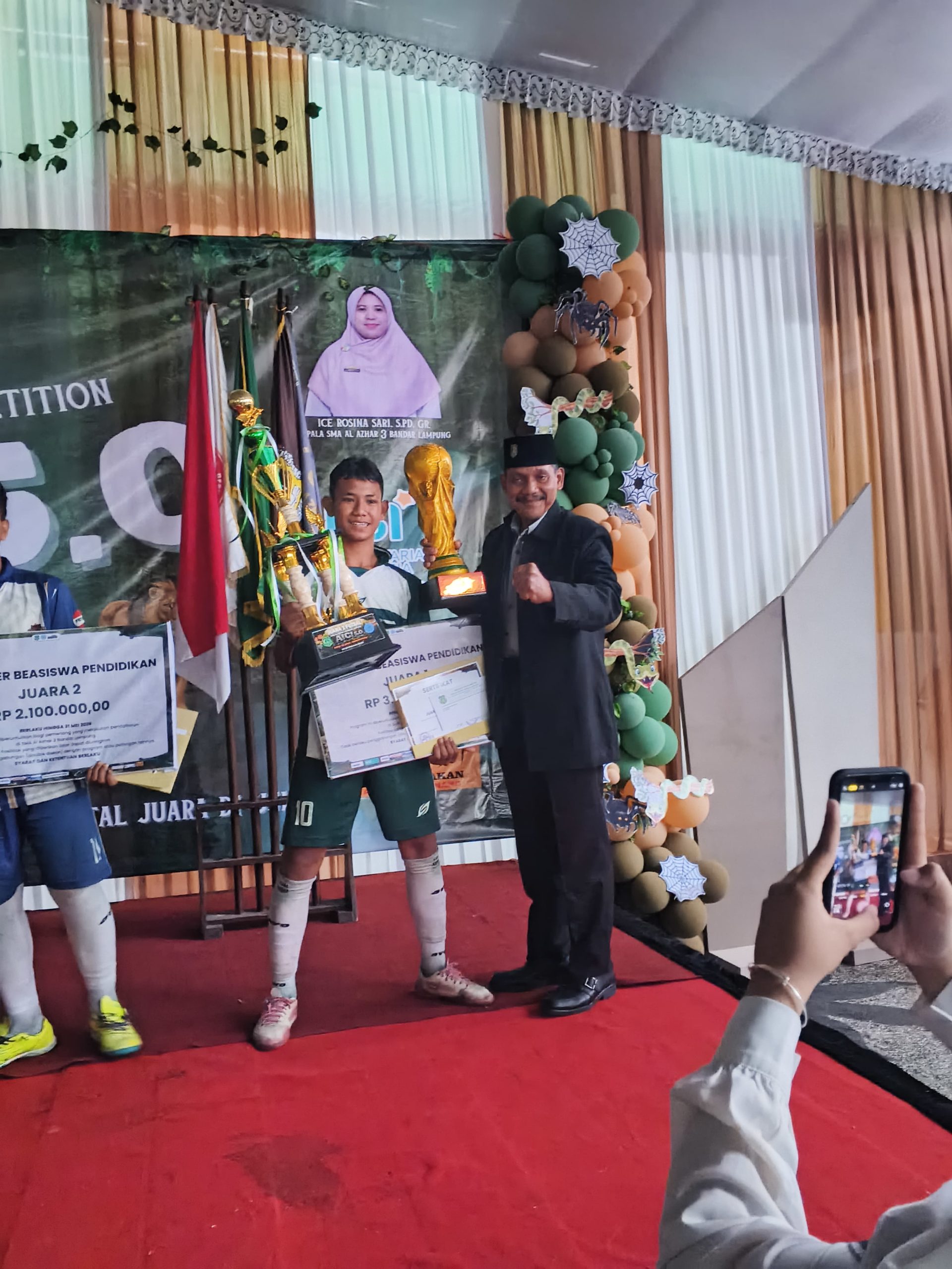 Momen penyerahan penghargaan Juara 1 kepada perwakilan tim futsal MTsN 4 Lampung Selatan dalam rangkaian AIC!5.0.