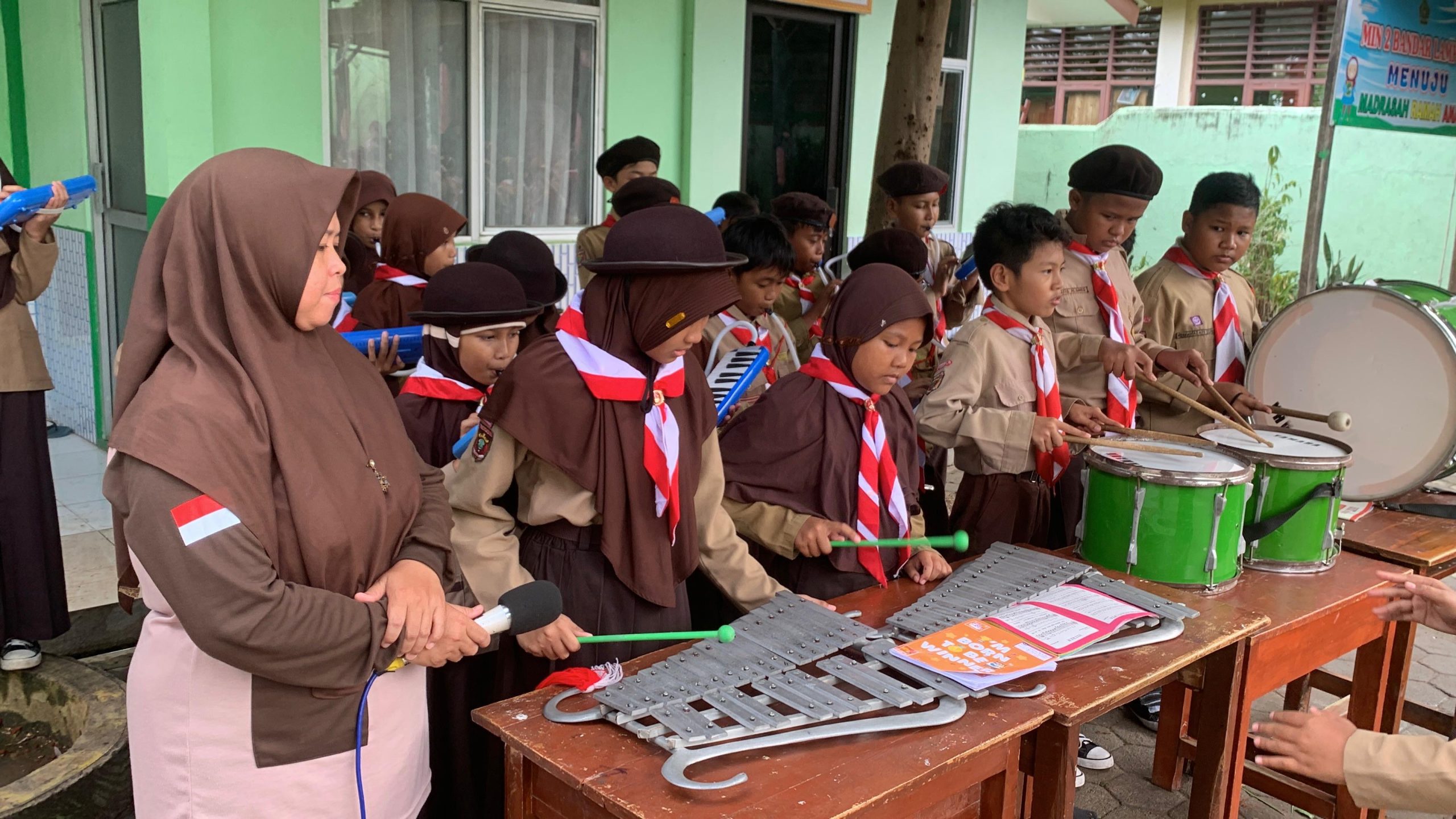 Di bawah bimbingan wali kelas, Fadlah Hamhij, S.Pd.I., para siswa melaksanakan tugas sesuai tata upacara dengan baik. Prosesi penurunan bendera kali ini diperkaya dengan iringan lagu yang dimainkan secara langsung menggunakan pianika, drumband, dan bellira, sehingga suasana upacara tetap khidmat sekaligus lebih hidup.
