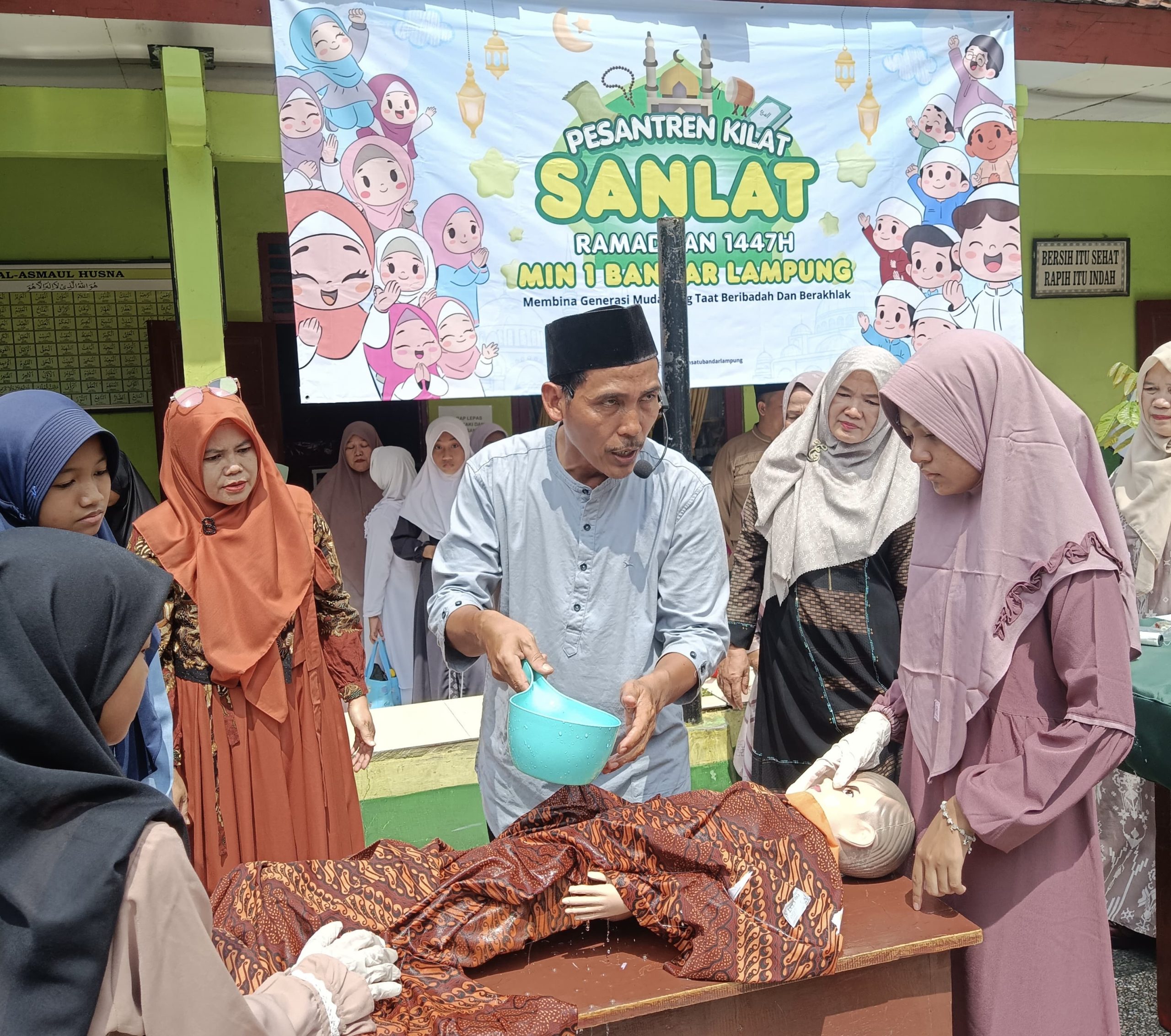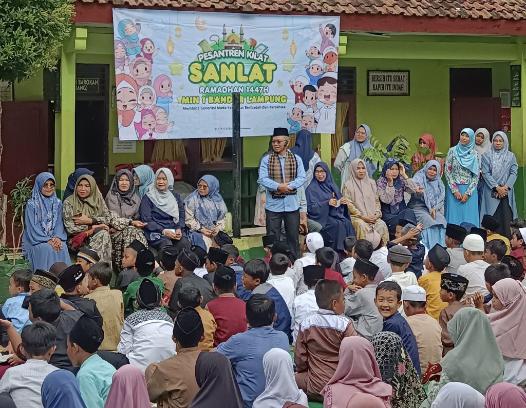 dutacendikia.id, Bandar Lampung – Suasana halaman MIN 1 Bandar Lampung tampak berbeda pada Rabu (25/2/2026). Ratusan siswa mengikuti kegiatan Pesantren Kilat Ramadhan 1447 H yang diisi dengan praktik langsung tata cara pengurusan jenazah. Kegiatan ini menjadi bagian dari pembelajaran keagamaan yang menekankan pemahaman sekaligus keterampilan ibadah dalam kehidupan sehari-hari.
