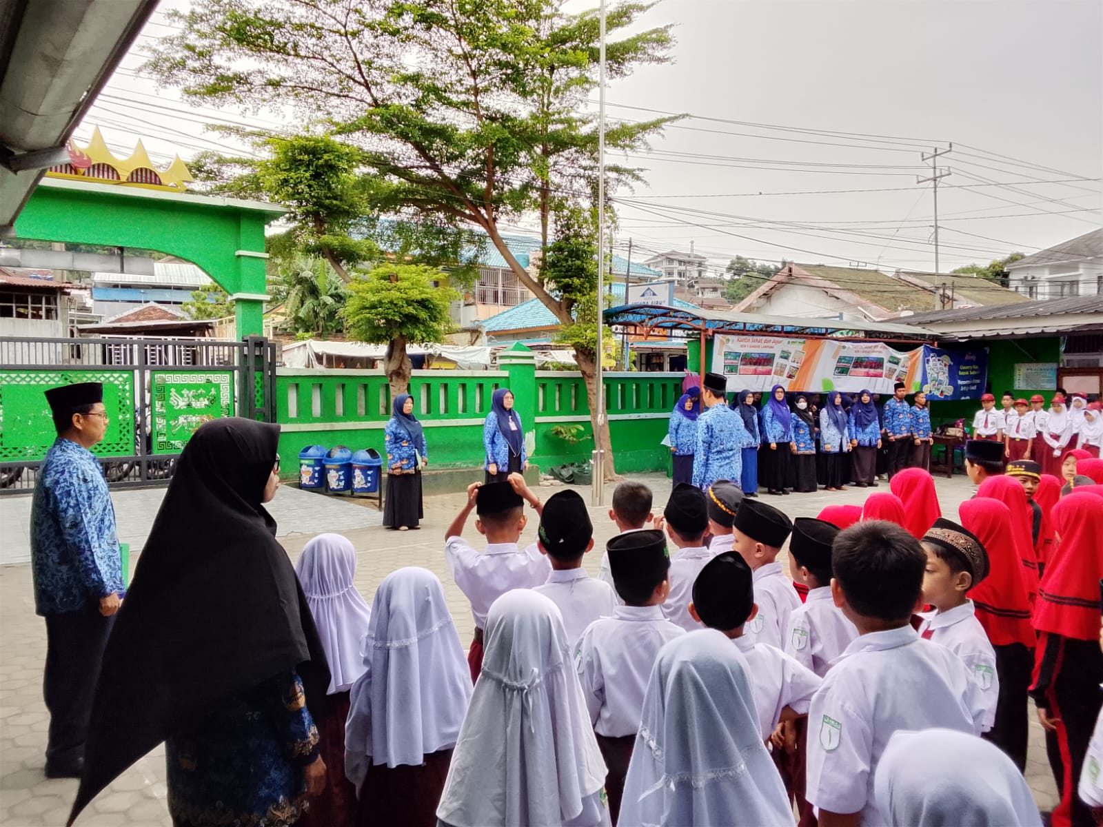 Apel berlangsung penuh khidmat dan tertib. Para guru mengenakan seragam Korpri berwarna biru, sementara siswa tampak antusias dengan seragam merah putih dan busana muslim khas madrasah. Lagu Indonesia Raya dan pembacaan ikrar Sumpah Pemuda menggema dengan lantang, menciptakan suasana yang menggetarkan hati di tengah halaman madrasah.