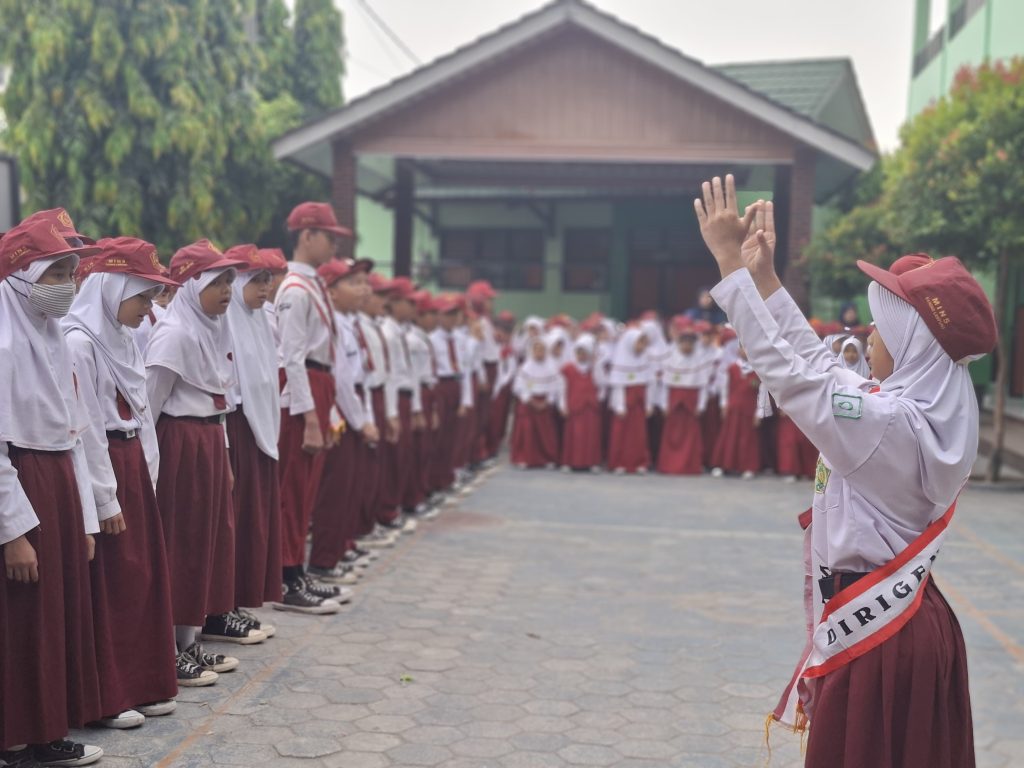 Petugas upacara MIN 5 Bandar Lampung memimpin jalannya kegiatan dengan penuh tanggung jawab dan percaya diri.