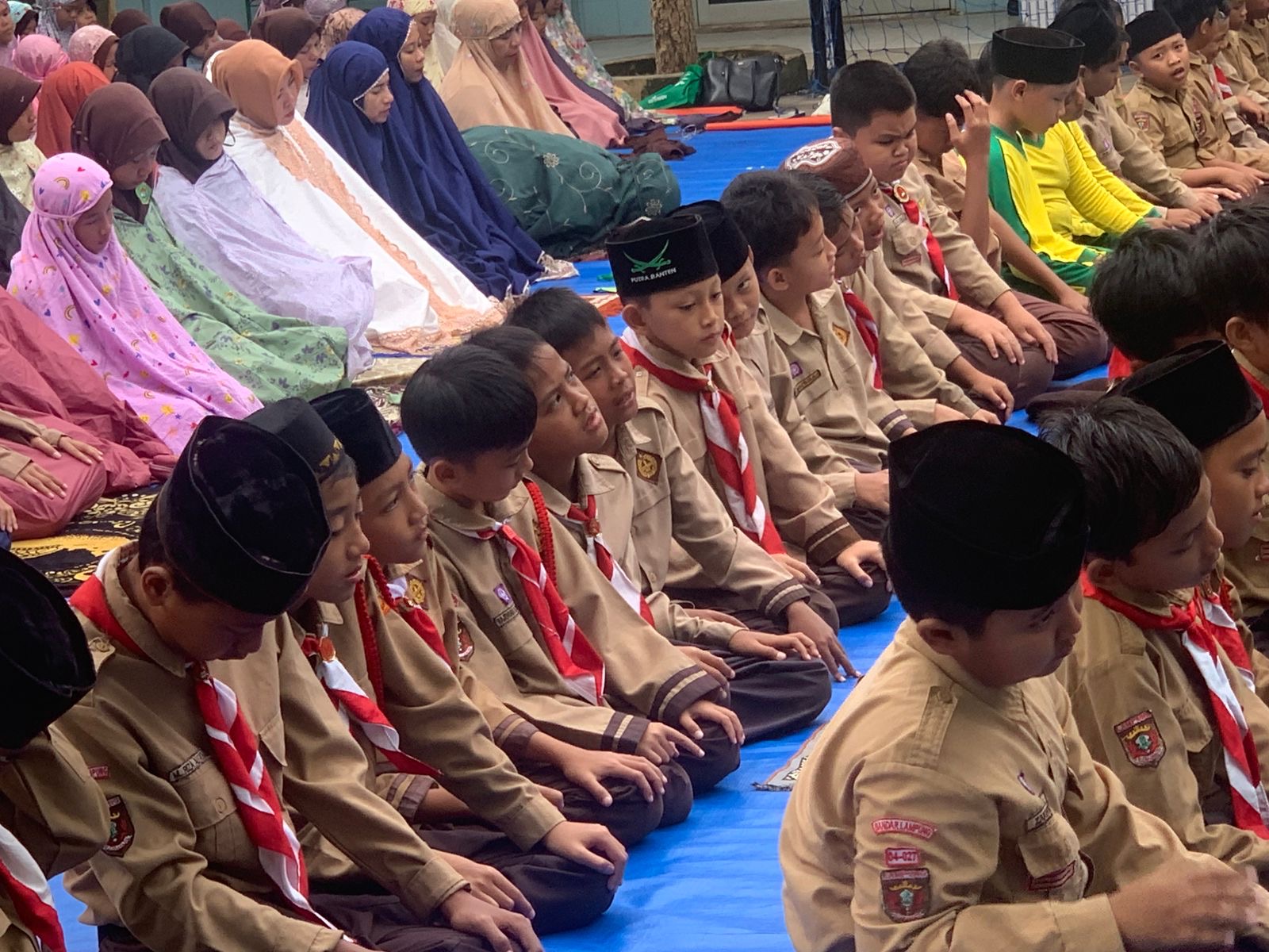 Kekhusyukan semakin terasa ketika seluruh siswa mengikuti rangkaian ibadah dengan tertib, mulai dari pengondisian barisan hingga pelaksanaan shalat. Seragam pramuka yang dikenakan para siswa menambah kesan disiplin dan kompak, mencerminkan semangat kebersamaan dalam menjalankan nilai-nilai keislaman di lingkungan madrasah.