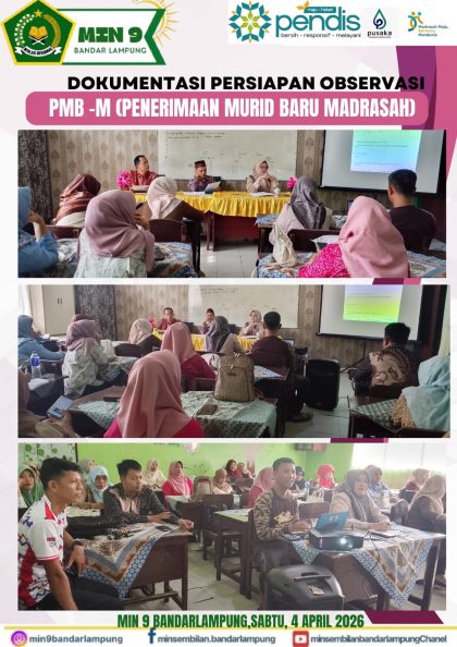 Agama | Pendidikan | Sekolah | • 4 April 2026 • MIN 9 Bandar Lampung Matangkan Persiapan Observasi PMB-M, Seluruh Guru dan Staf Dilibatkan dutacendikia.id, Bandar Lampung – MIN 9 Bandar Lampung menunjukkan keseriusannya dalam menyambut pelaksanaan Penerimaan Murid Baru...