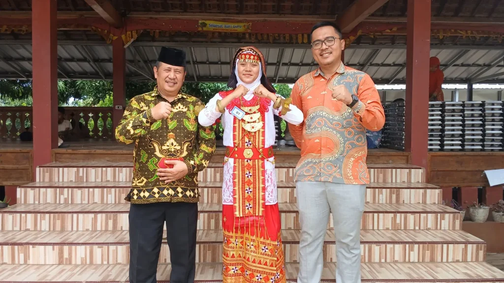 dutacendikia.id, Lampung Selatan – MTsN 1 Lampung Selatan kembali menunjukkan komitmennya dalam pelestarian budaya lokal melalui prestasi siswinya, Andini Putri Choir. Siswi kelas 8A tersebut berhasil meraih Juara 2 pada Lomba Pidato Bahasa Lampung tingkat Kabupaten Lampung Selatan yang digelar oleh Dinas Perpustakaan dan Kearsipan, Kamis (20/11/2025). Bertempat di Sanggar Kegiatan Bersama (SKB) Negeri Lampung Selatan, kompetisi ini menjadi bagian dari rangkaian peringatan Bulan Gemar Membaca dan diikuti oleh pelajar dari berbagai sekolah di Kabupaten Lampung Selatan.