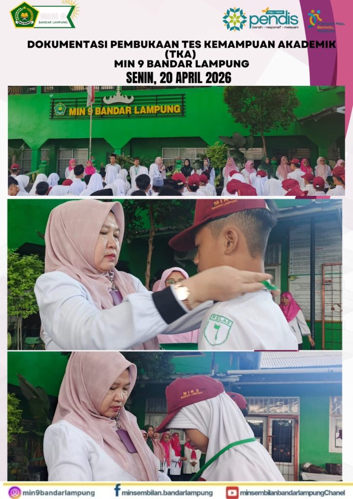 dutacendikia.id, Bandar Lampung –Pelaksanaan Tes Kemampuan Akademik (TKA) hari pertama di MIN 9 Bandar Lampung berlangsung tertib dan lancar, Senin (20/4/2026). Kegiatan ini diikuti oleh seluruh siswa kelas VI sebagai bagian dari evaluasi capaian pembelajaran pada jenjang akhir pendidikan dasar.